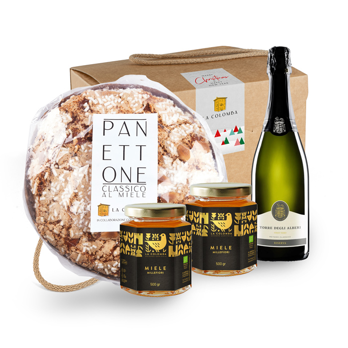Miele bio 500 gr x 2pz, Panettone artigianale al miele, Spumante dell’Oltrepò Pavese bio